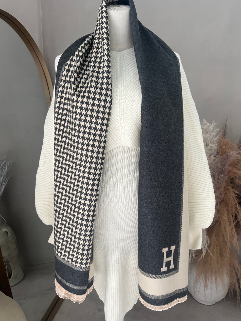 The Eme Printed Scarf, super soft fabric, over sized style, tassel trim and all over print. Champagne detail.