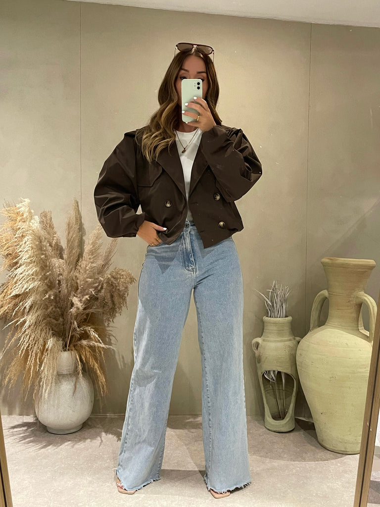 EMILY CHOCOLATE CROPPED TRENCH JACKET