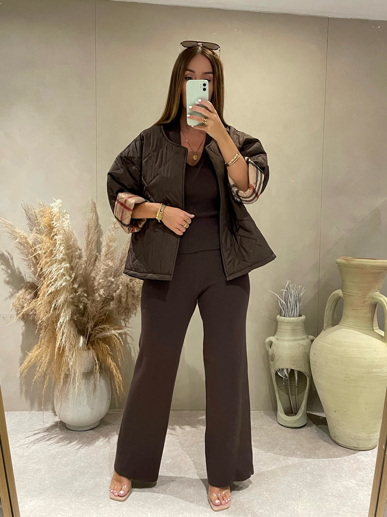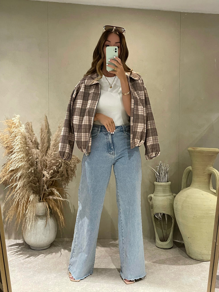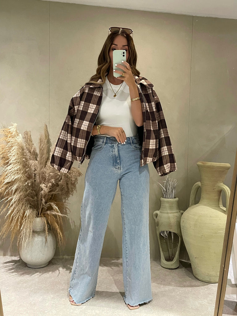 BINA CHOCOLATE CHECK BOMBER JACKET