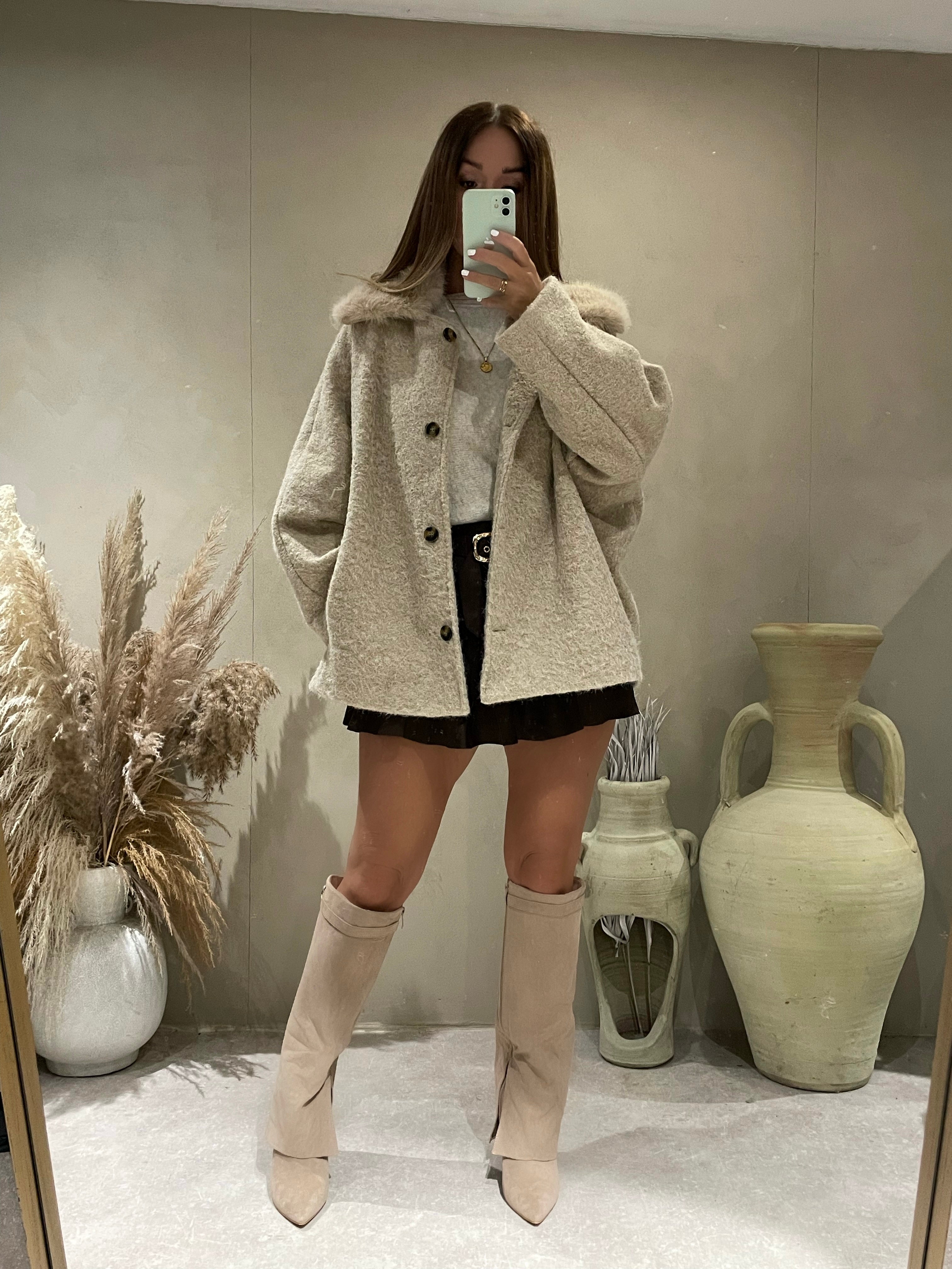 VERITY BEIGE FUR TRIM JACKET - store credit only