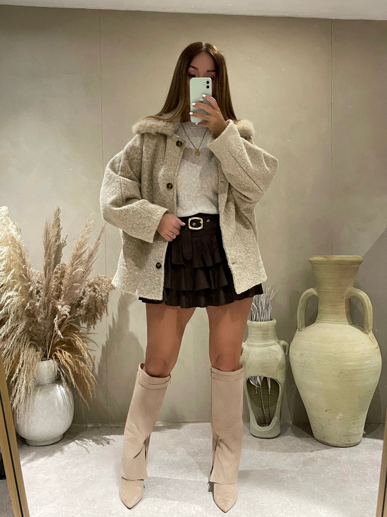 VERITY BEIGE FUR TRIM JACKET - store credit only