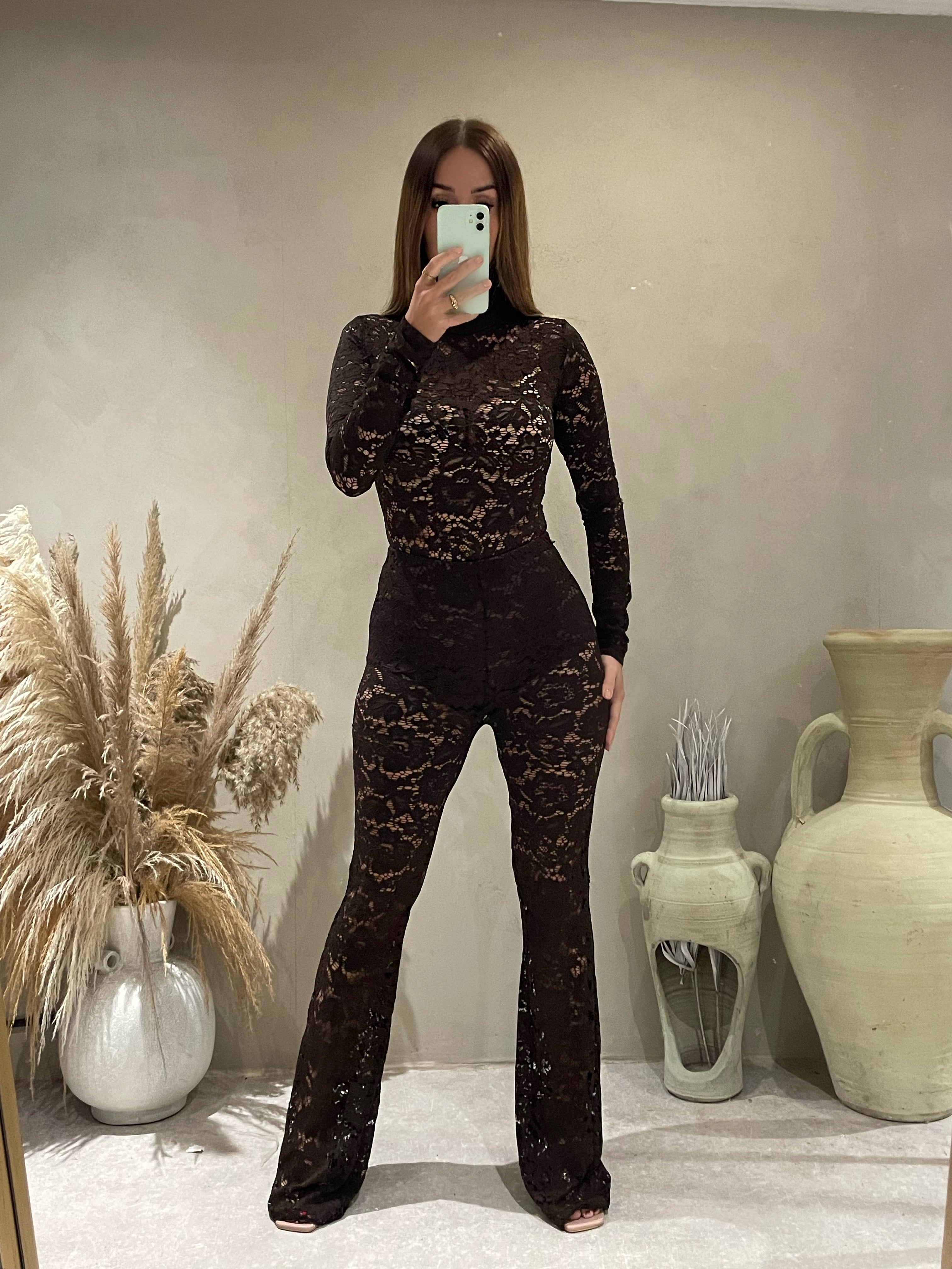 JULIA CHOCOLATE LACE TROUSER SET - Final sale no returns