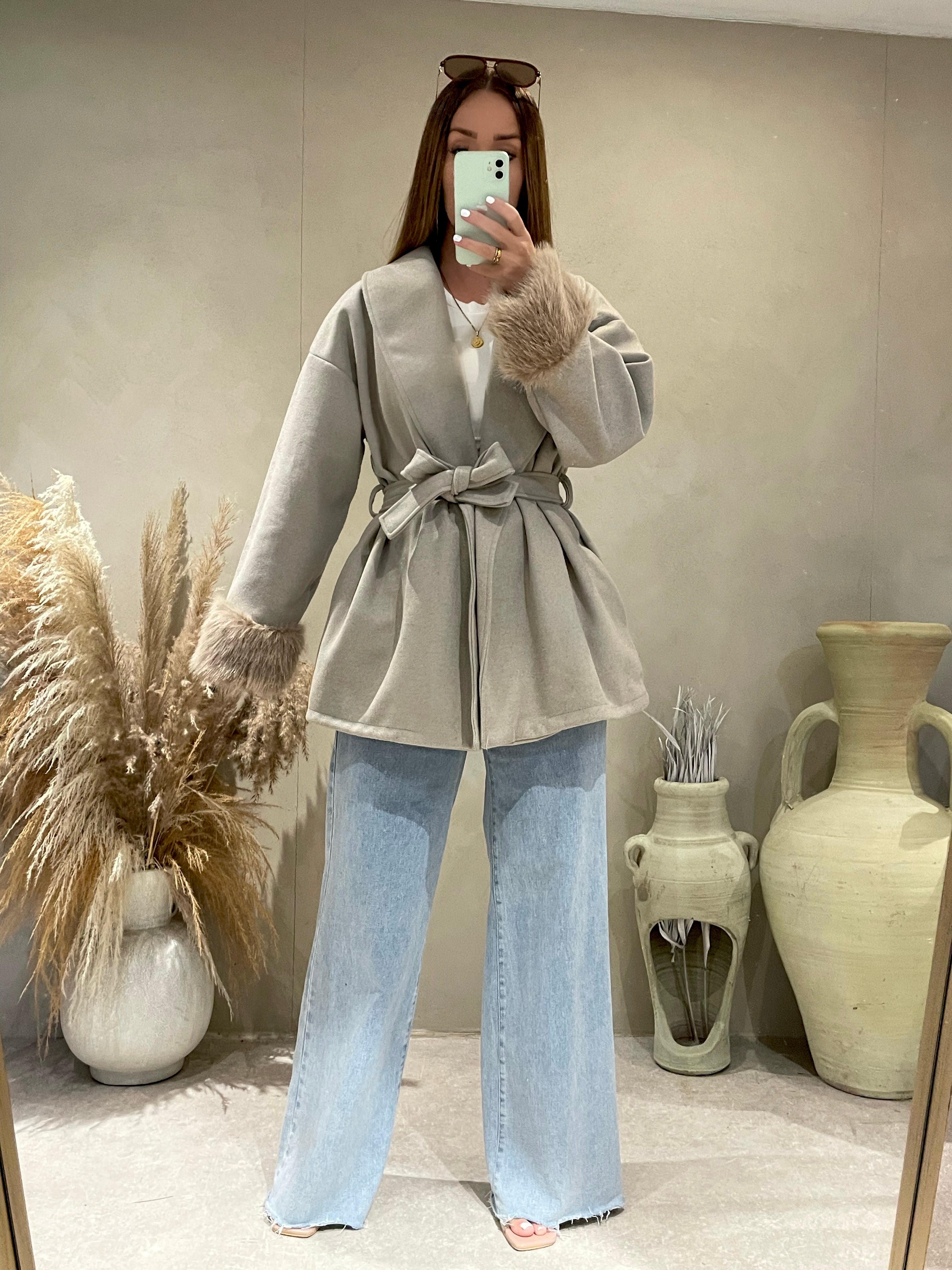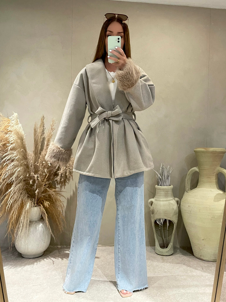 AMMA TAUPE FUR TRIM JACKET