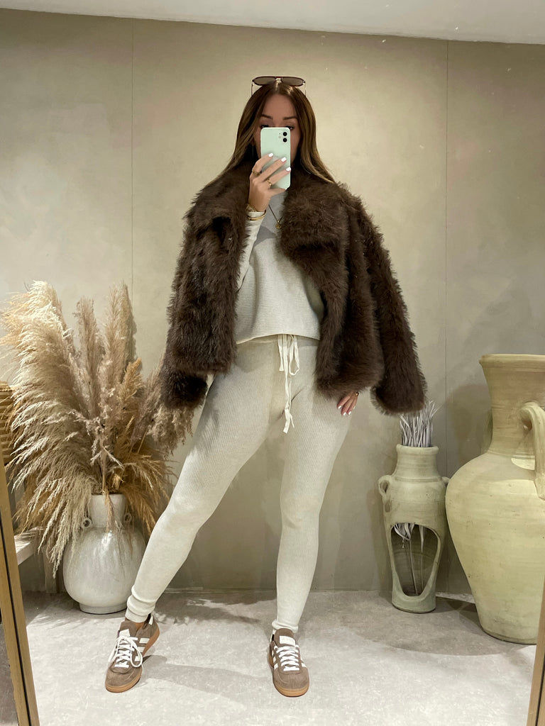 KIM FAUX FUR CHOCOLATE OVERSIZED JACKET